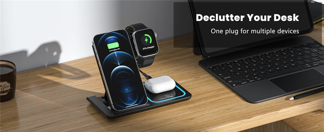 Estación 3 en 1: Carga rápida para tu iPhone, Apple Watch y AirPods – SIN CABLES